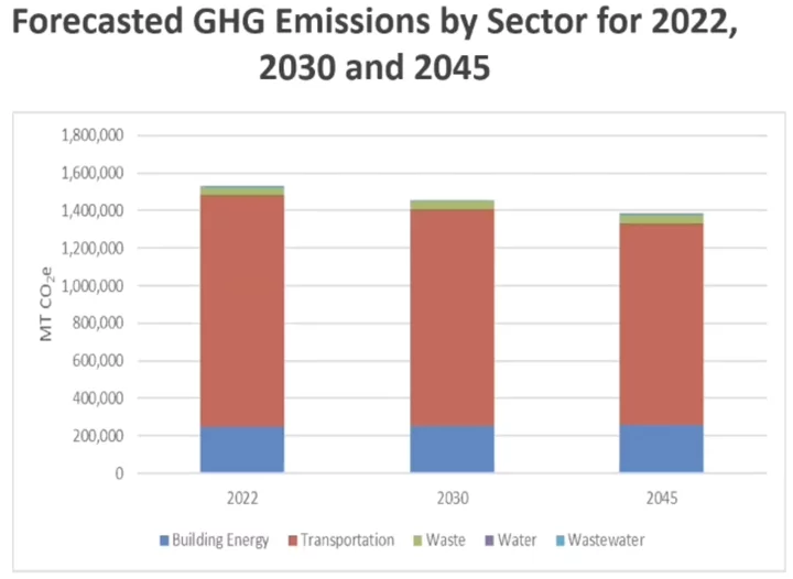 A forecast of the county’s future greenhouse gas emissions shows that transportation is the largest source of such pollutants. | Screenshot.