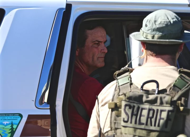 Ray Christie sits detained in a Bureau of Land Management vehicle during the 2018 raid on his ranch in the Arcata Bottoms. | File photo by Andrew Goff.