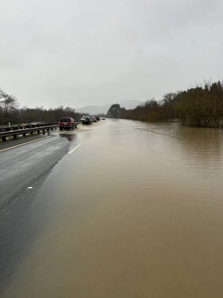 Hwy. 101 norte de Loleta poco antes de que cerraran. | Foto vía Caltrans.