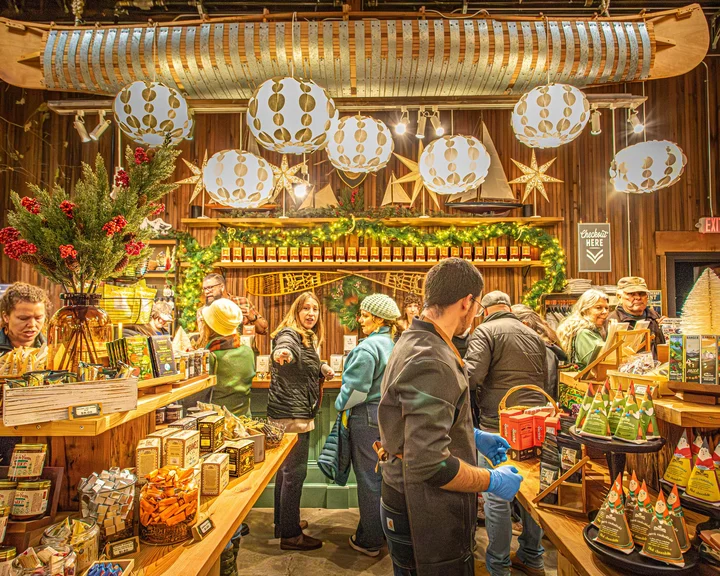 Over the past year, Dick Taylor owners Adam Dick and Dustin Taylor were able to widen the sidewalk in front of their chocolate factory, and it proved an ideal holiday gathering spot. Inside the factory, the pair addressed the crowd (or as many who could fit inside, anyway) ahead of a group countdown to the tree lighting.