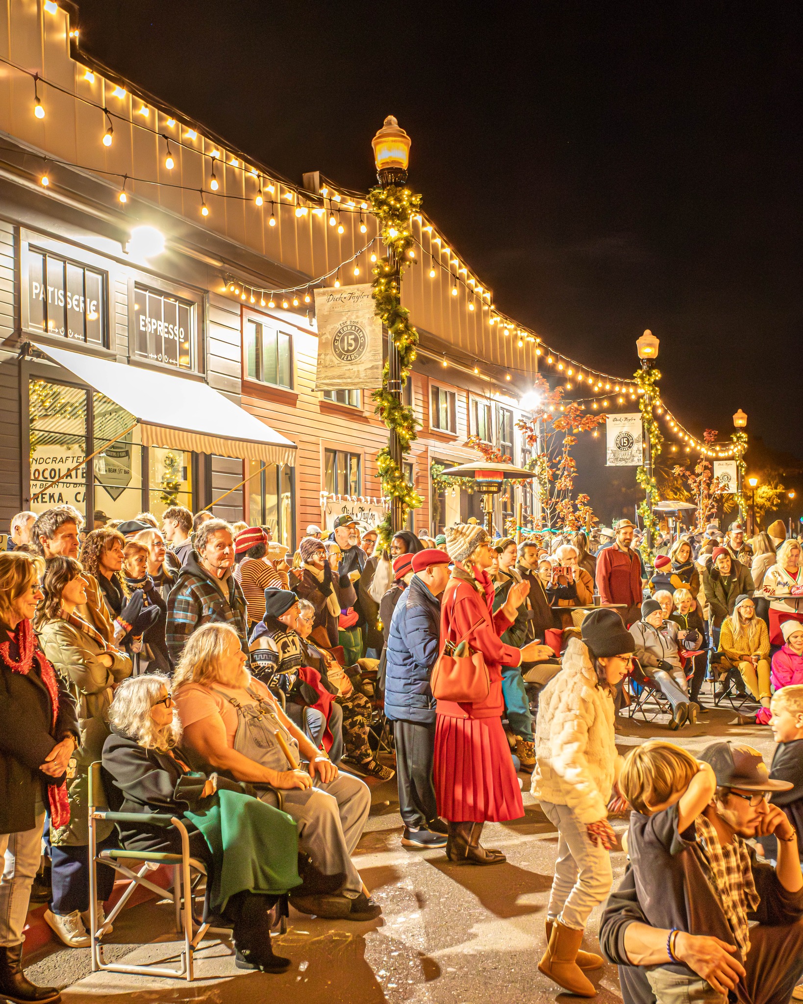 Hundreds of residents and visitors flooded down to First Street in Eureka’s Old Town last night to attend the third annual Christmas tree lighting celebration at the Dick Taylor Craft Chocolate factory.