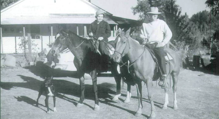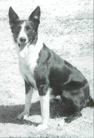 The most remarkable dog I encountered in that time, though, was a black and white McNab that Rae Wright had trained. Rae was good with dogs and this female, Patsy, was truly amazing. Rae also had a little red kelpie that would circle around uphill to jump up and ride on the saddle with him, but Red was a plaything alongside of old Patsy. She was a one-person dog, continually on guard against anyone touching or even coming near Rae’s property. She habitually rode in the passenger seat of his old Chevy pickup and woe to anyone who might try to get too close to the cab. She stood guard over his boots until morning where he left them on the porch at night.