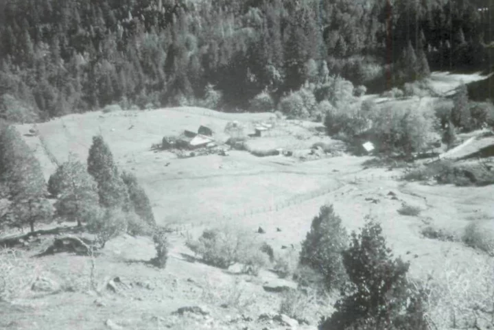 Looking down at the Beck headquarters on Elk Ridge, known as the Samuels Place. Photo courtesy Jerry Beck, via the Humboldt Historian.
