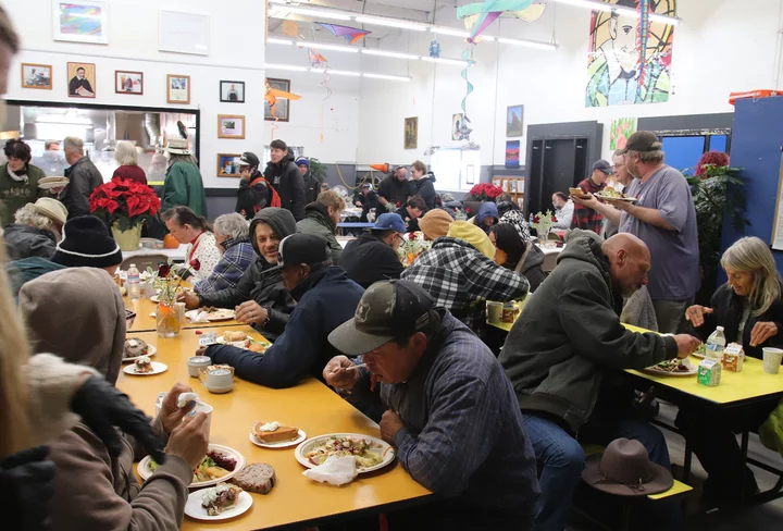 Volunteers serving diners at last year’s free Thanksgiving dinner at St. Vincent de Paul’s in Eureka. | Photo: St. Vincent de Paul Society - Redwood Region