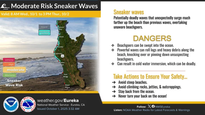 A 10-13 ft swell will impact the Northwest California coast beginning Wednesday morning. A moderate risk of sneaker waves will exist Wednesday through Thursday with the highest risk in Humboldt and Del Norte counties.