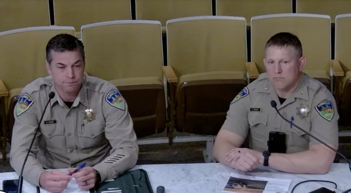 Humboldt County Sheriff William Honsal and Undersheriff Justin Braud report on the county’s ALPR system at a Board of Supervisors meeting in April 2024. | Screenshot.