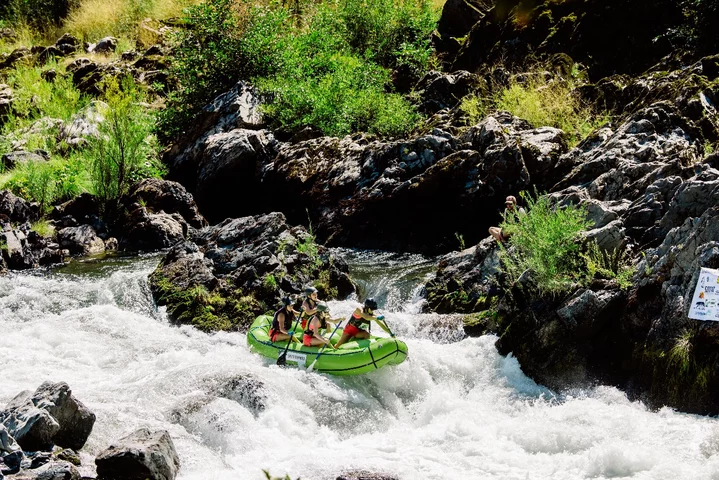 The second race was Downriver, a sustained endurance test of synchronic paddling, threading rafts through tight boulder gardens, and navigating Class III rapids as racers vied for the fastest river currents over an average of 28 grueling minutes. Much of this race is won in the slower flatwater sections where teams read subtle currents and eddy lines to minimize drag while maintaining a strict paddling cadence. The faster intermittent rapids are where teams can regroup, catch a breath, and soak up the beauty of the Trinity.