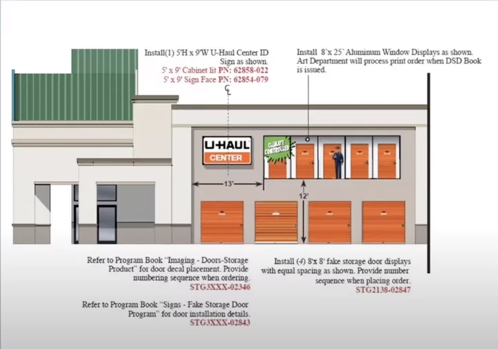 New signage proposed at the old K-Mart location, home of the self-storage side of the U-Haul operation.