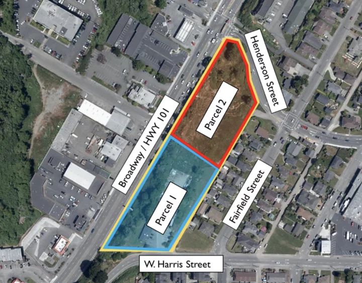 The future location of Sunset Heights. (Parcel 1 = Phase 1 and Parcel 2 = Phase 2.) | Map: City of Eureka