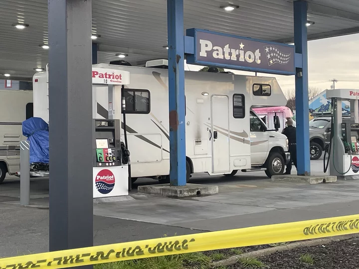 The vehicle involved in the crash was a motor home, which is now parked in the Patriot gas station. Police have been looking it over.