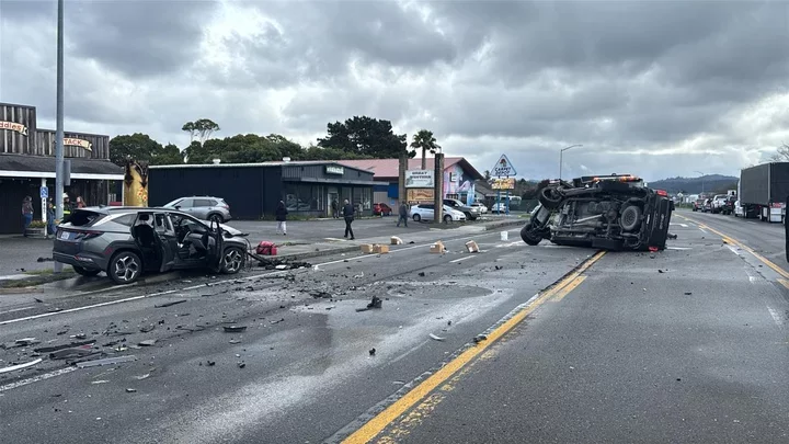 • The GMC crossed into the northbound lane and collided with the Hyundai. The GMC came to rest on its side.