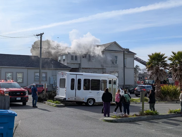 The house, which is across the street from the Humboldt Senior Resource Center, has been subdivided into multiple units, and the blaze appeared to be contained to the second floor.