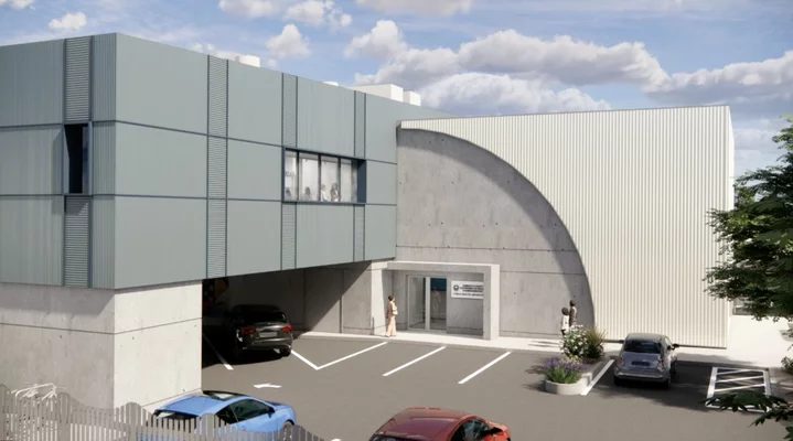 On the Wood Street side, which faces a residential area, the design incorporates vegetation and what Morin described as “a natural curve” on the exterior wall. This side also includes the employee vehicle entrance.