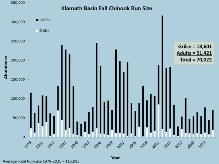 “The future is bright for the Klamath, but it might be a while until we get there because we still have some broods that are going to be affected by the dam-removal process that we have yet to see return and or contribute to ocean fisheries,” he continued. “We’ve been in an ‘overfished’ designation since 2018 — not specifically to say that fishing is the issue; it’s just this stock has not been meeting conservation objectives for a while now. What was needed was approximately 67,400 adults to achieve ‘rebuilt’ status for the stock. We didn’t get there, but this 40,000 does get us out of the ‘overfished’ status and puts us into what is rebuilding status.”