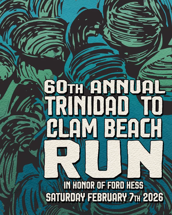 The Trinidad to Clam Beach Run returns this Saturday, February 7, 2026, marking the 60th annual running of one of Trinidad’s most beloved community traditions. Participants can run, sprint, or walk the scenic 5¾-mile course beginning at Saunders Park, crossing Little River at Moonstone Beach, and finishing with a celebration at Clam Beach. To register for the event, visit exploretrinidadca.com/tcbr.