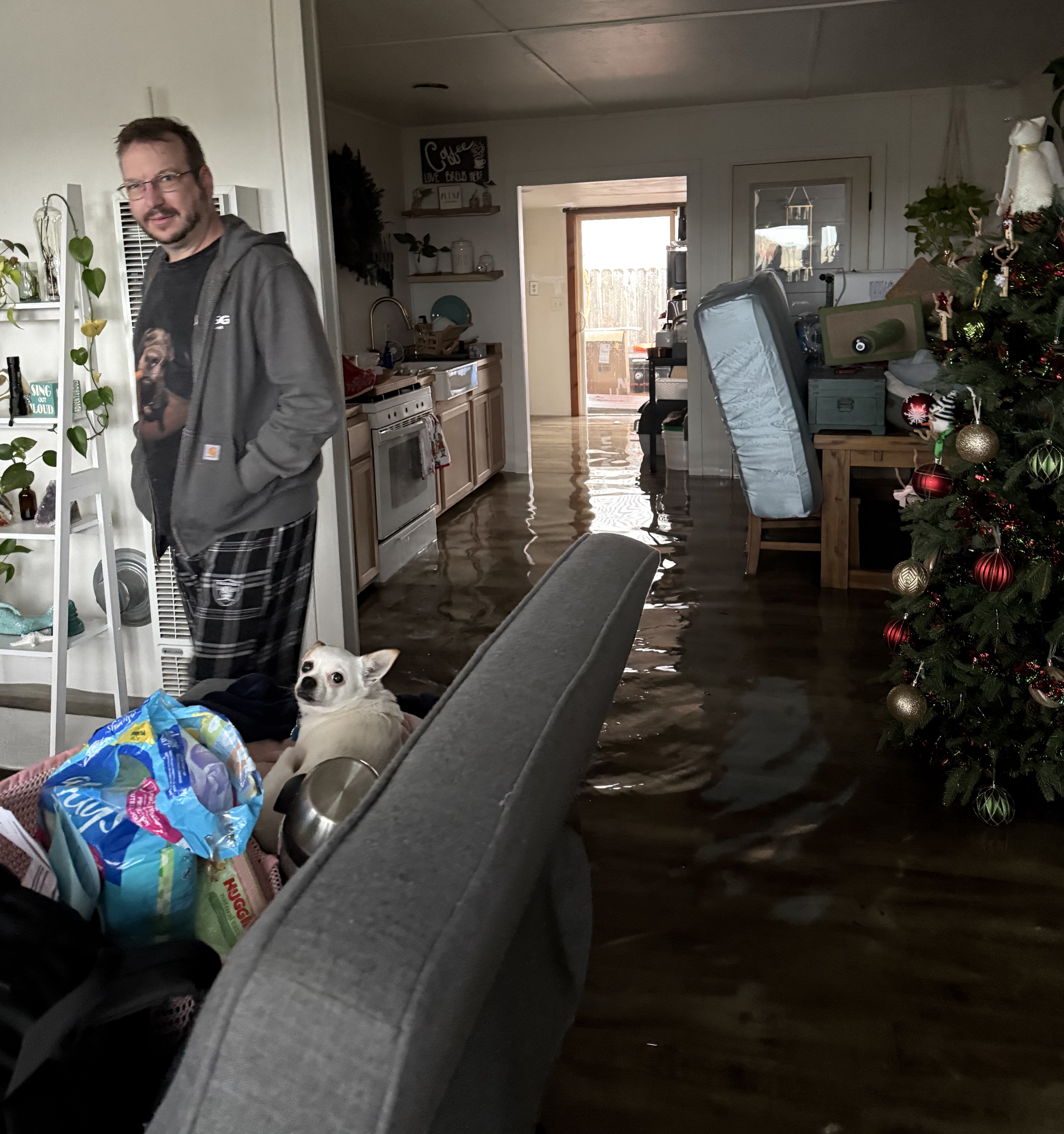 “I got up and started running around, picking things up off the floor and just grabbing anything I could to take upstairs,” she continued. “All of the flooring downstairs is ruined, along with appliances and furniture. … We had an adjuster come out from our flood insurance provider … and he was throwing around figures, like $50,000 to $70,000 in damages. The vacuum cleaner, the internet router and my kids’ shoes were all ruined. It just adds up.”