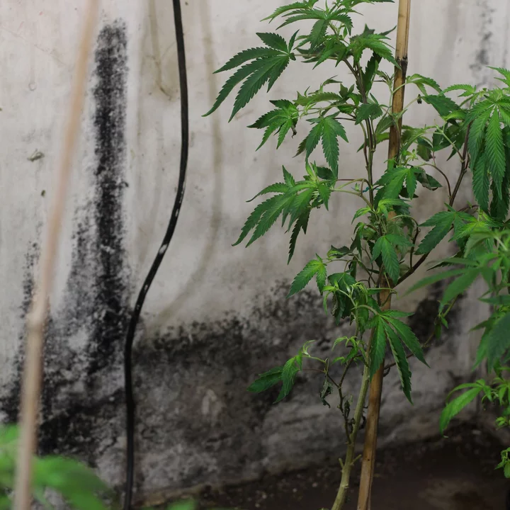 Black mold grows on the walls of an indoor cannabis cultivation operation associated with the suspect.