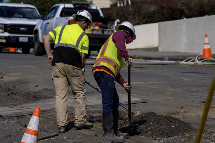 Laborers work on the steel waterline replacement project, March 13. Photos by Dezmond Remington.