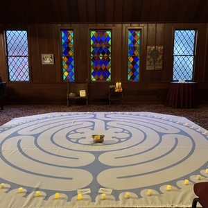 The Labyrinth is an ancient form of walking meditation along a circular winding path leading to a center to pause for reflection; then follow the same path back out.