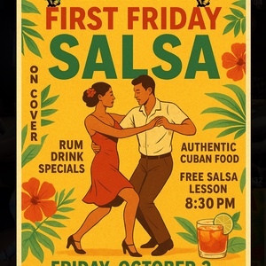 Miss Julie will be hosting the evening and starting us out with her salsa lesson at 8:30 before the event starts.