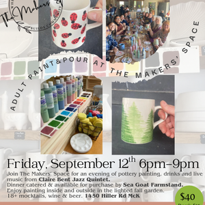 Paint your own pottery under the golden glow of the fall garden while enjoying the smooth sounds of Claire Bent and her Jazz Quartet.