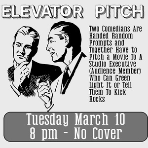 Comedians are handed prompts at random and have to pitch movies to a “movie executive”.