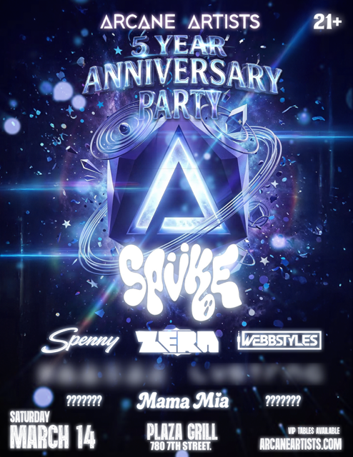 This Saturday we’re bringing back one of our favorite past headliners! We are pleased to welcome back, heavy house hitter with melodic soundscapes and ethereal elements, the central California phenom, SPÜKE! He will be joined by our current bass tech house rock star, SPENNY, Trap and bass house artist, ZERA, Pop, bass, and house influenced house act, WEBBSTYLES as well as a special tribute song by Mama Mia! We will have multiple guest djs taking the stage with the Vagabond Dancers as we come together to celebrate our 5 year anniversary this Saturday night at Plaza Grill! We will have a special laser light show and of course - VIP TABLES + BOTTLE SERVICE AVAILABLE