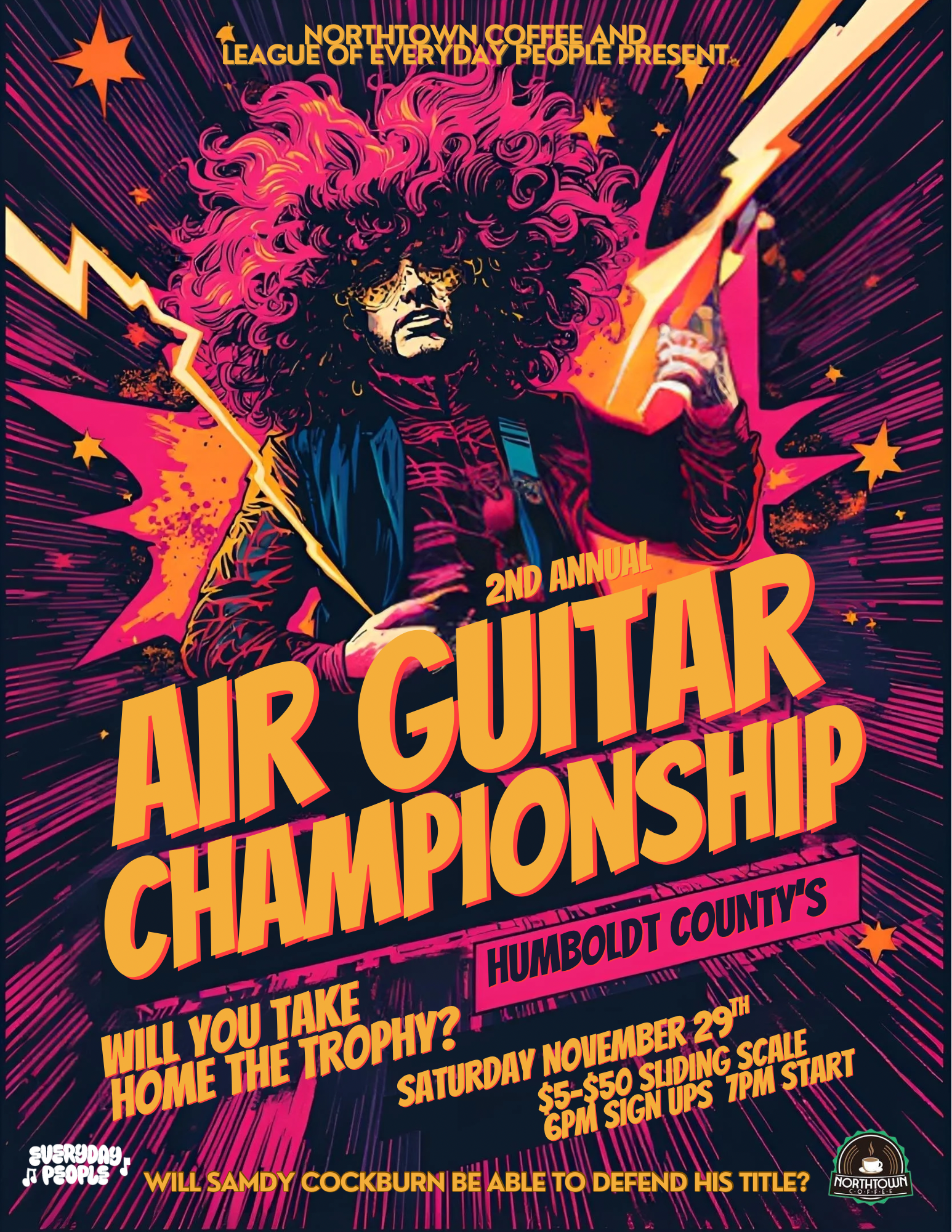 Get ready to shred! Humboldt’s 2nd Annual Air Guitar Championship is coming in loud and proud! Who’s taking home the trophy this year? You can enter or observe the glory.