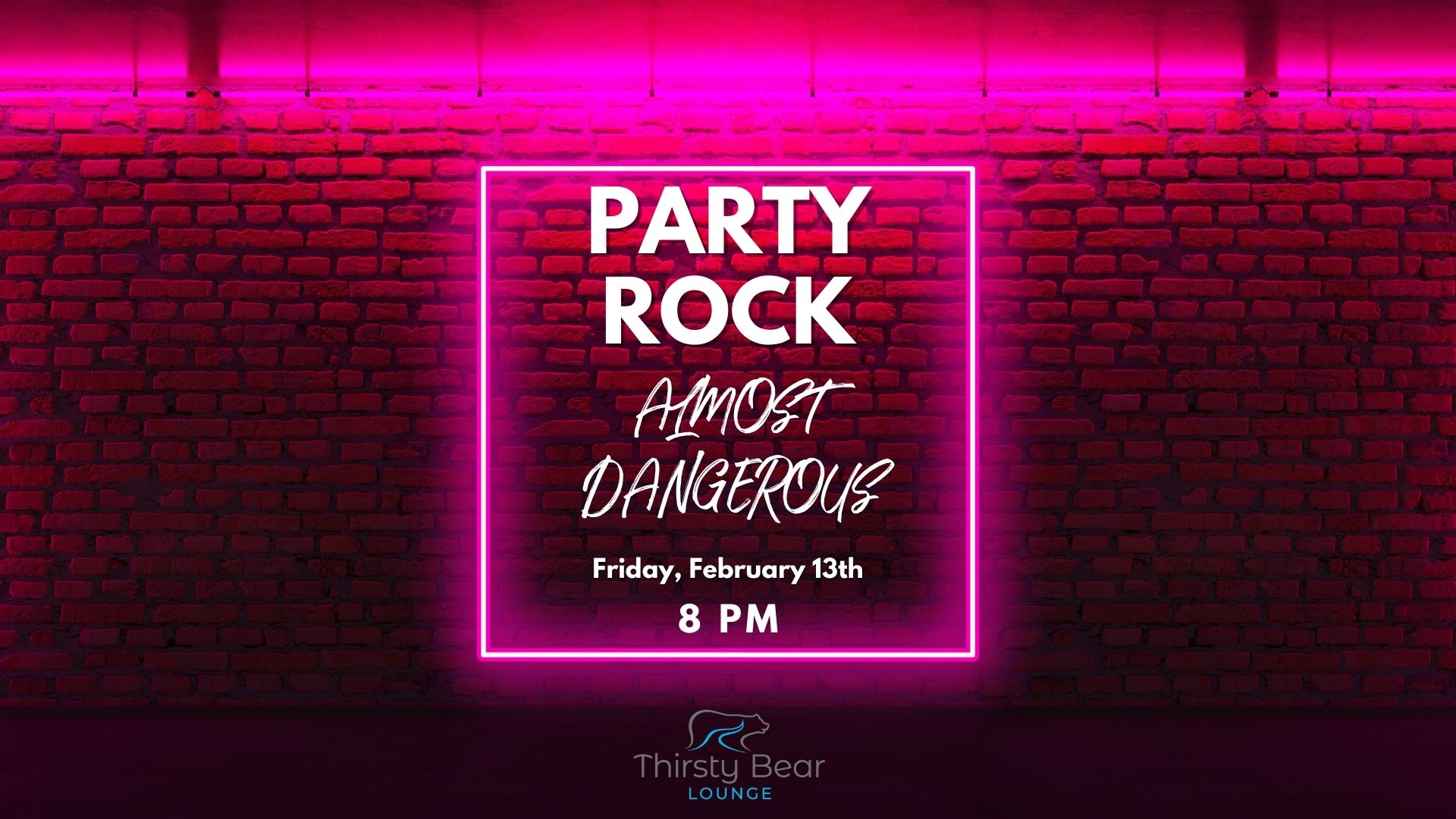 Get ready to rock on February 13th as Almost Dangerous brings party rock energy to the Thirsty Bear Lounge with a live show built for dancing, singing, and late-night fun.