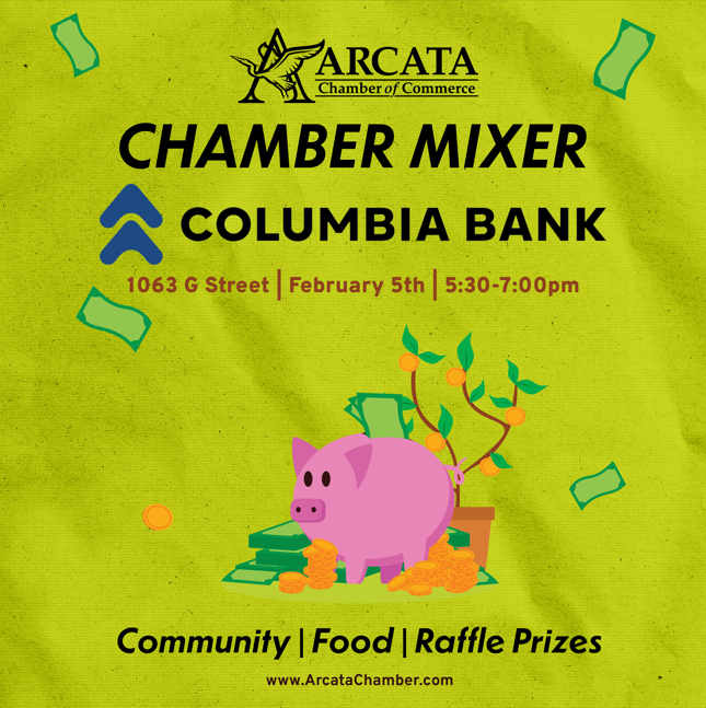 Join us for a Mixer at Columbia Bank in Arcata! You do not need to be a member to attend!