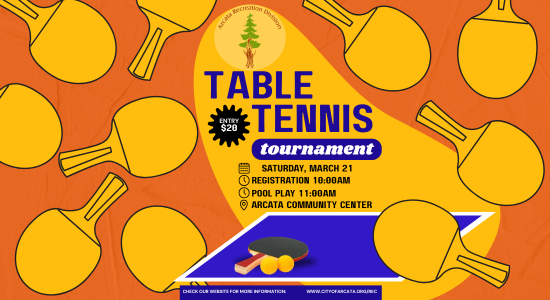 Get your paddles ready for another Table Tennis Tournament, hosted by The City of Arcata’s Recreation Division and “Pacific Force”.
