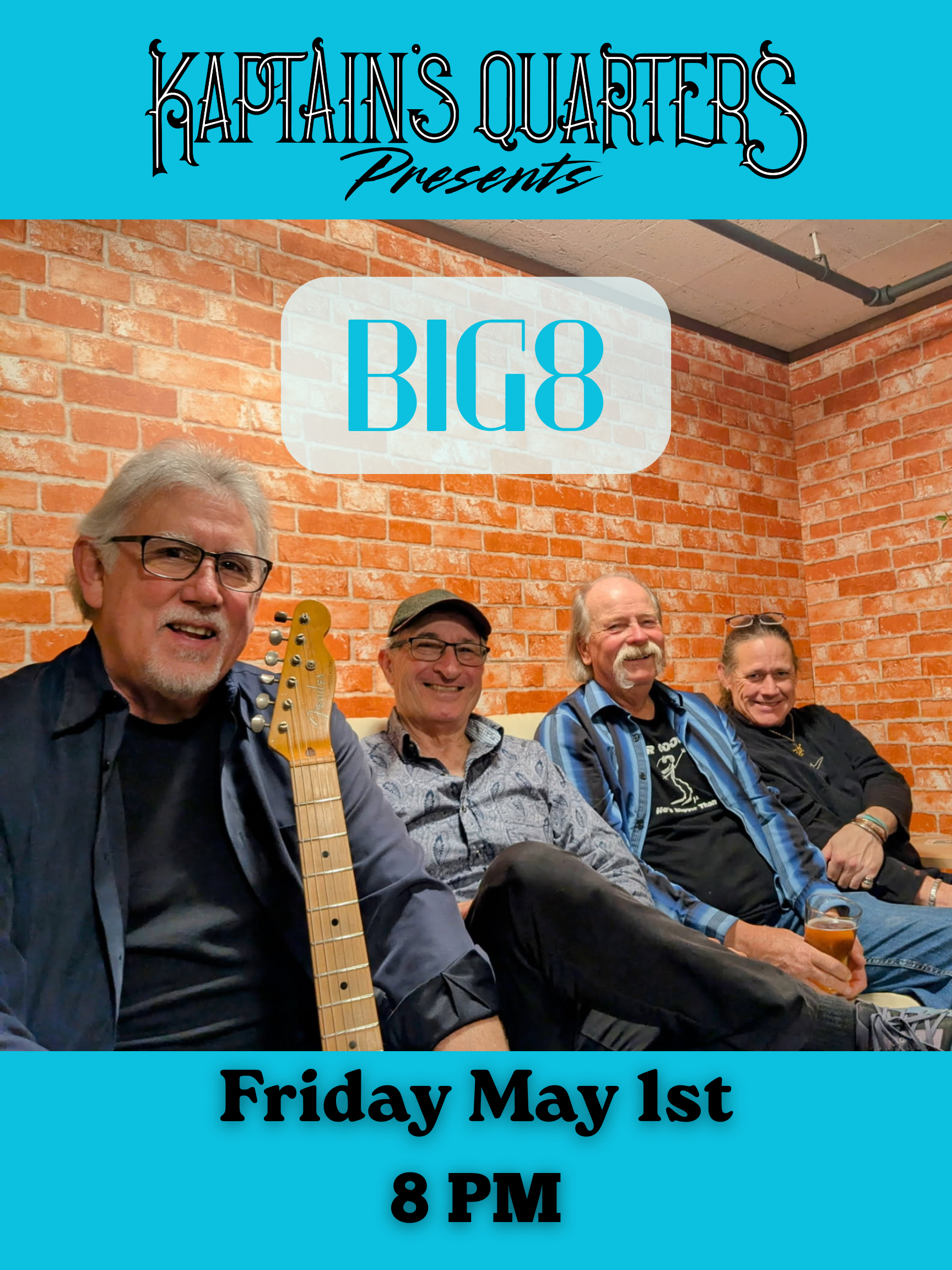 Join us for a wonderful evening of music with local legends, Big8! Playing a wide variety of Blues, Rock, Jazz and everything in between!
