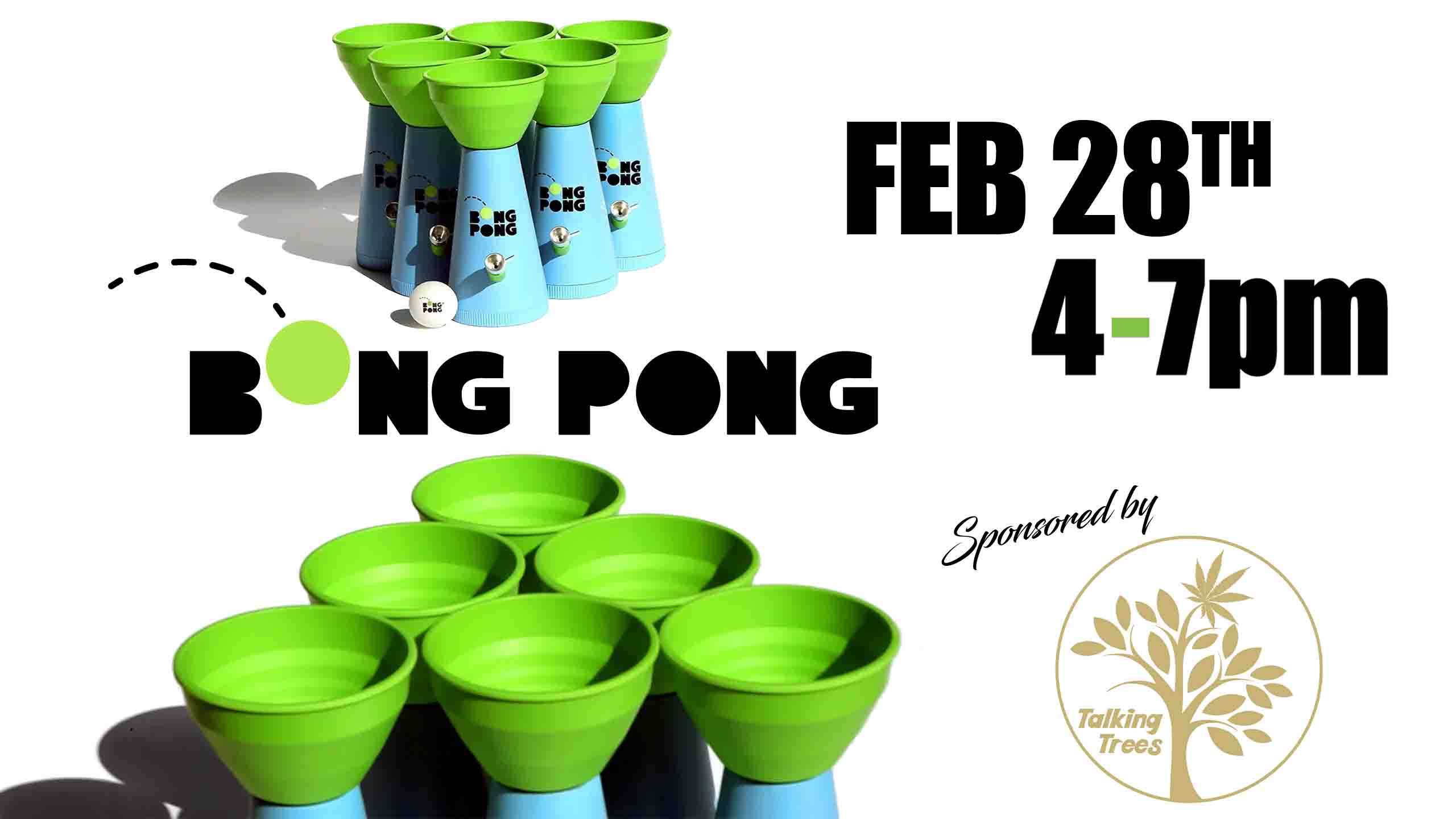 A twist on the classic game of Beer Pong, but with fewer calories. Unless you get the munchies. Come visit the High Tide Lounge from 4-7PM to take part in the fun! This even is generously supported by Talk Trees!