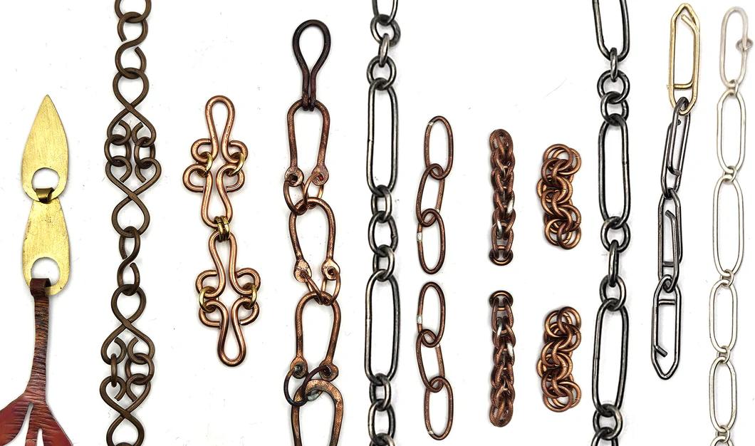 Students will leave this workshop with a number of samples and the know how to create unique handmade chains. We will be working in copper and brass, but all skills will translate to sterling silver.
