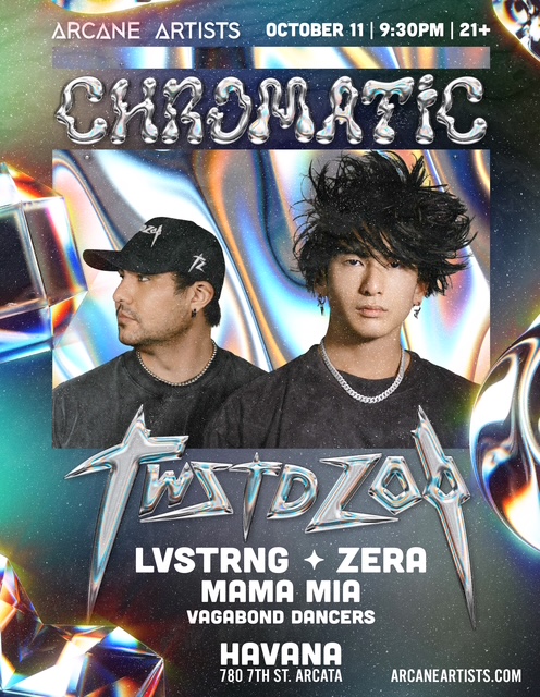 Straight from the underground of LA we are bringing you TWSTD ZOO, a hard hitting house, techno, and dubstep duo that will leave you in awe and dripping in sweat. We are pleased to bring the event, CHROMATICA to HAVANA to kick off our halloween season. We also have the the talented bass house producer and DJ, ZERA as well as high energy bass and house DJ, LVSTRNG throwing down some mast y sets! Don’t miss rising star vocalist and Humboldt favorite, MAMA MIA set to sing an electro set. The VAGABOND DANCERS will also be lighting up the stage! Treat yourself to a VIP table with bottle service if you’re feeling fancy! LETS GET CHROMATIC with a crazy high energy lineup!