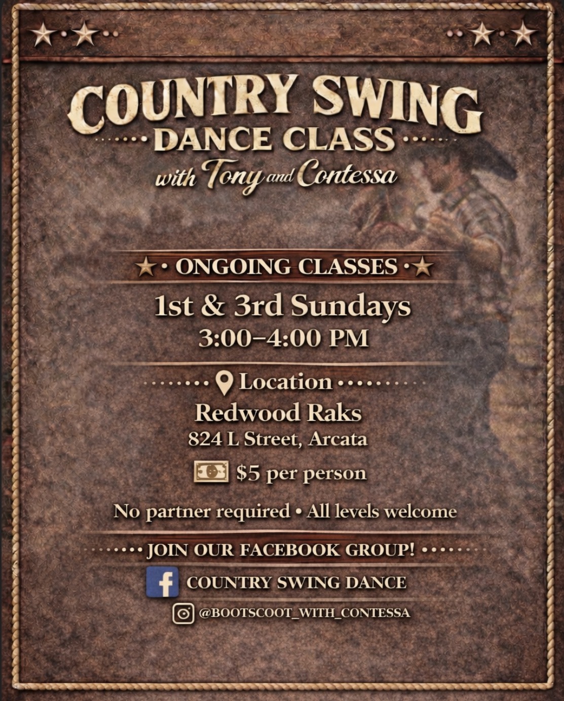 Come learn the popular Country Swing Dance! No partner required, all levels welcome!!