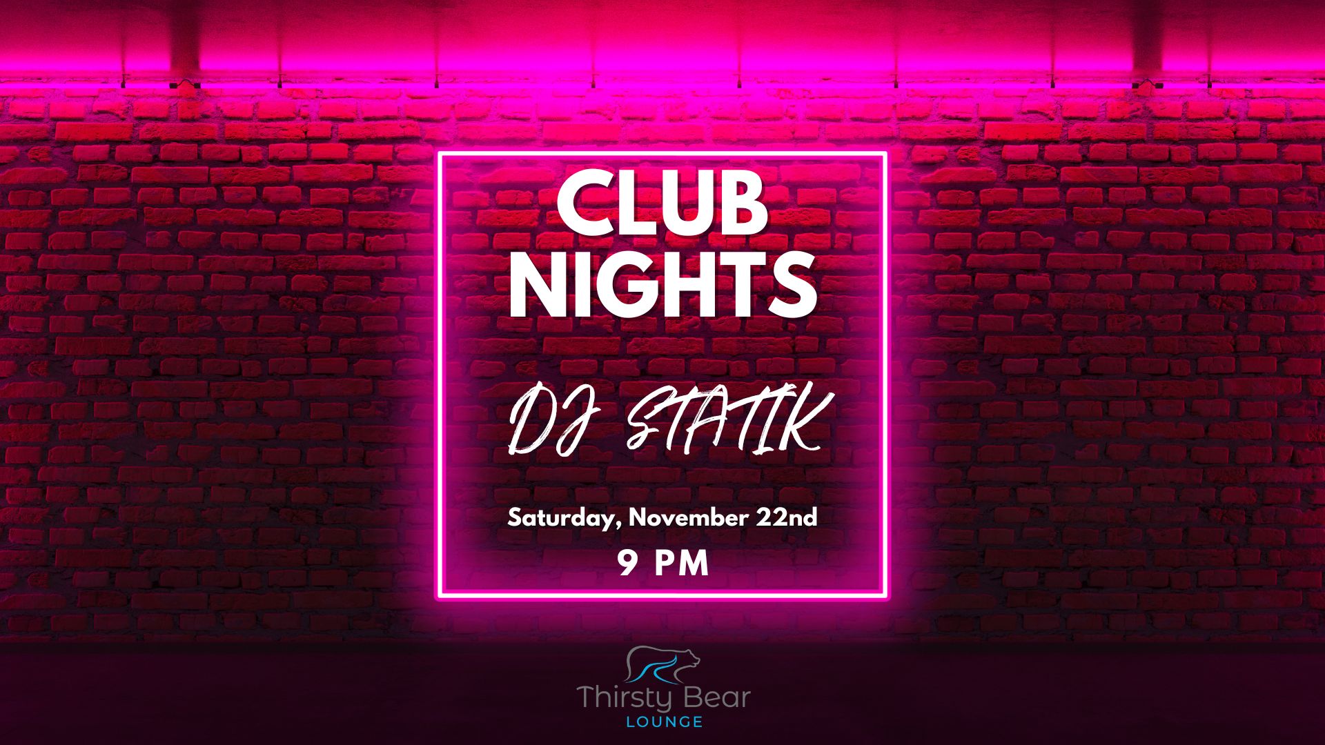 Saturday, November 22nd – DJ Statik takes over The Thirsty Bear Lounge with club nights, bringing an exciting set that keeps the energy high and the dance floor packed. 21+