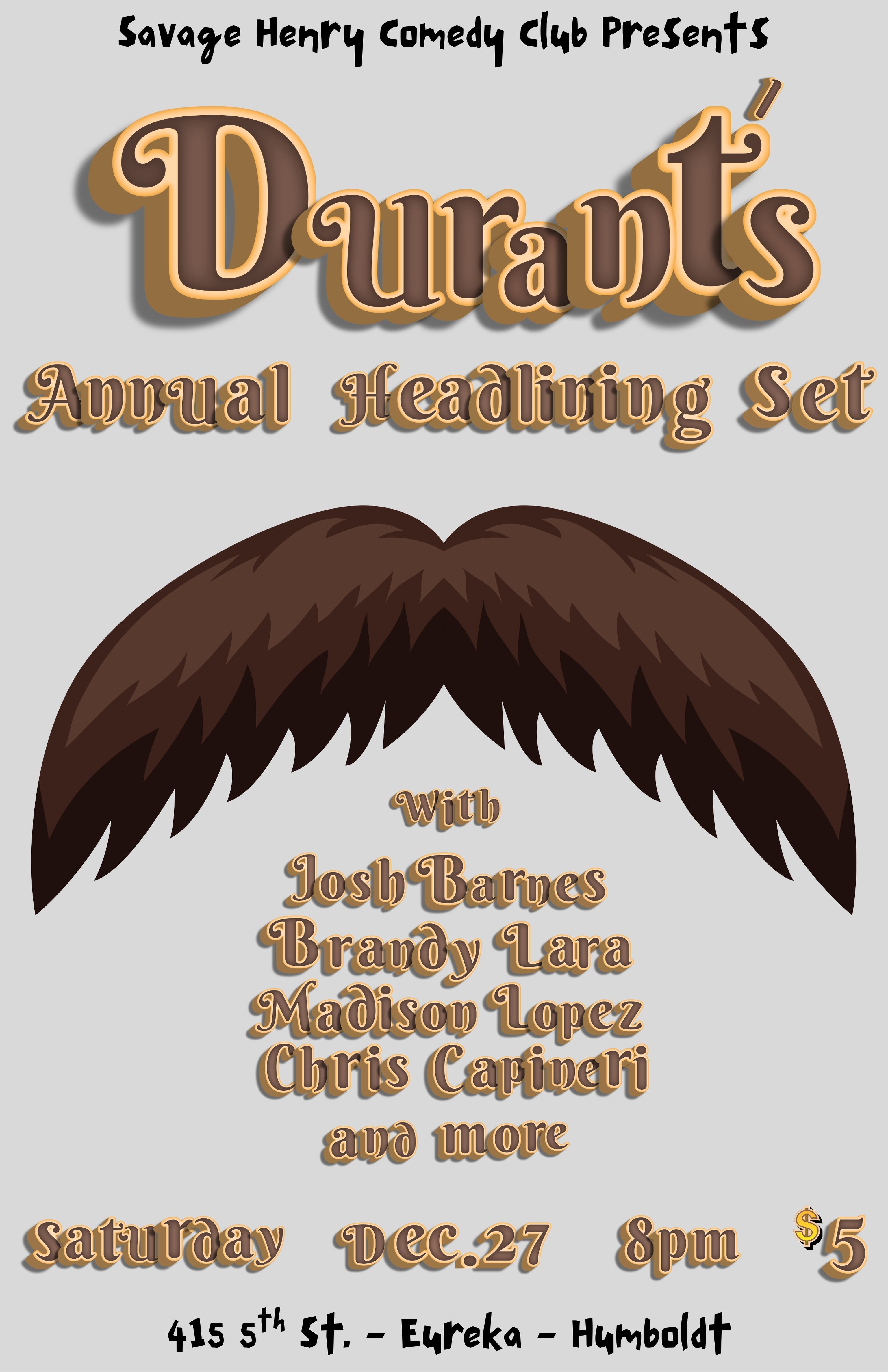 Comedy Club Founder and Booker Chris Durant Headlines with Josh Barnes, Brandy Lara, Madison Lopez, Chris Ca;pineri….and more!