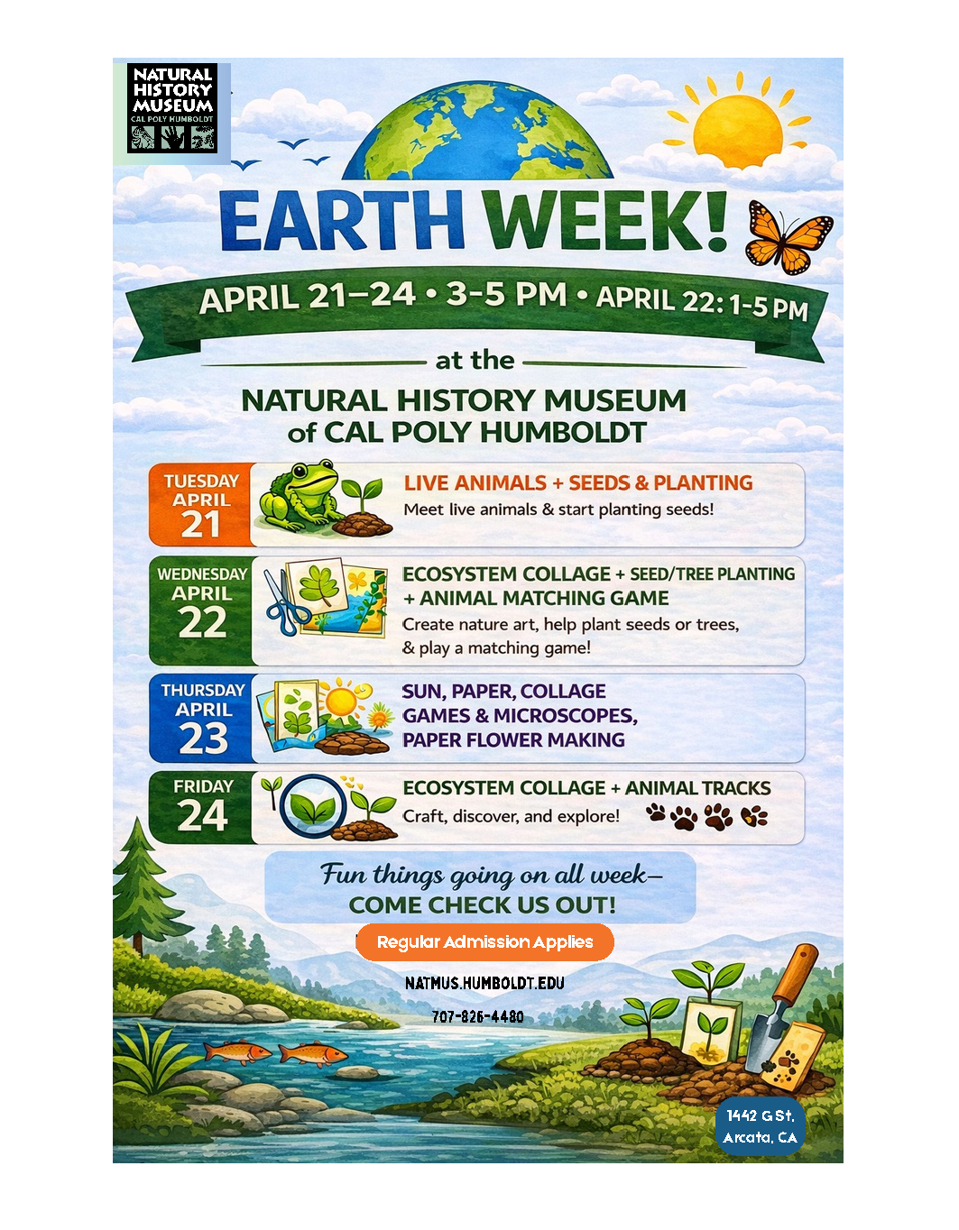 Join The Natural History Museum of Cal Poly Humboldt for a week Of Earth Day Fun!