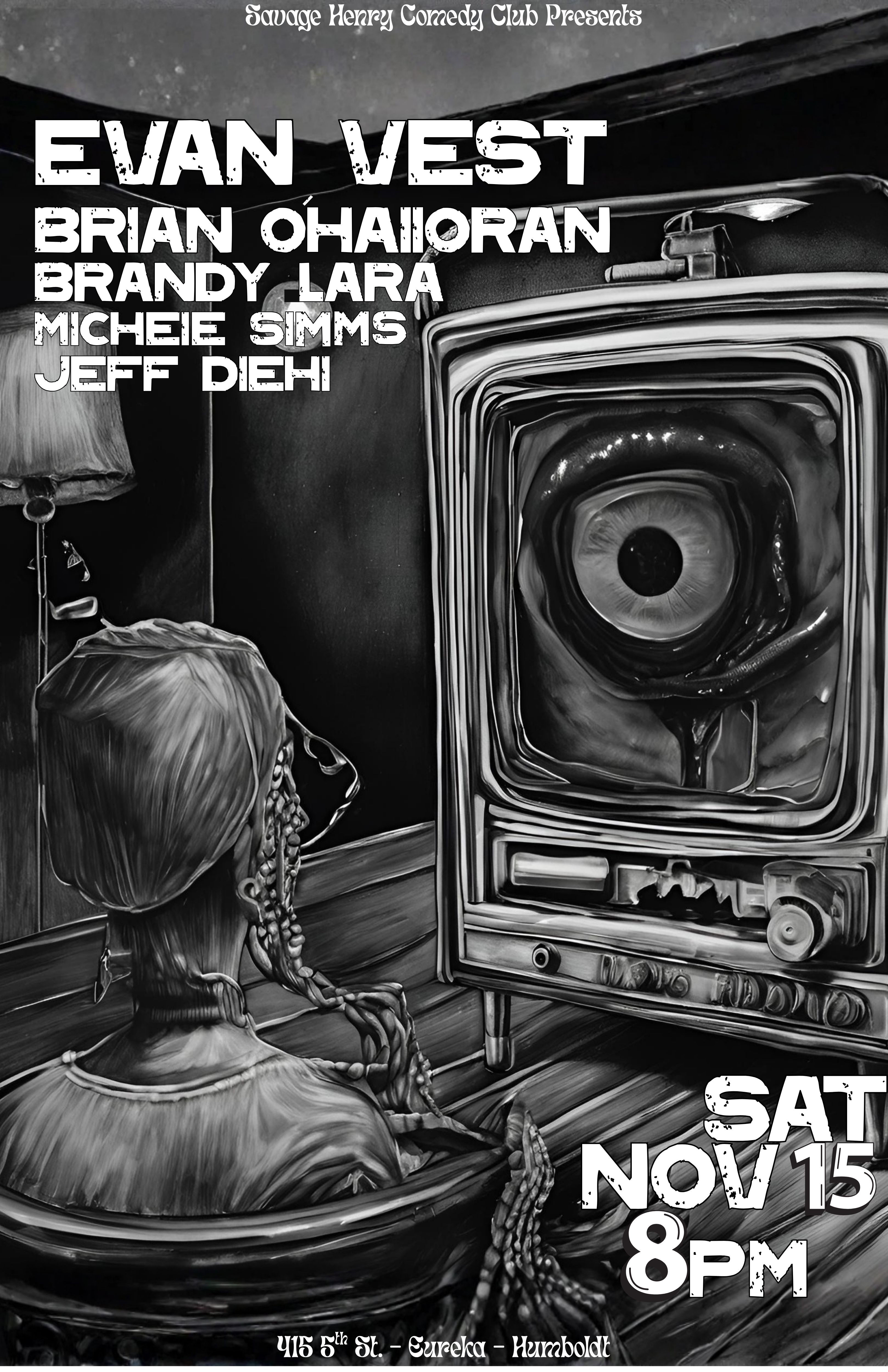 Local comedy legend Evan Vest headlines with the Bay’s Brian O’Halloran and locals Brandy Lara, Michele Simms and Jeff Diehl.