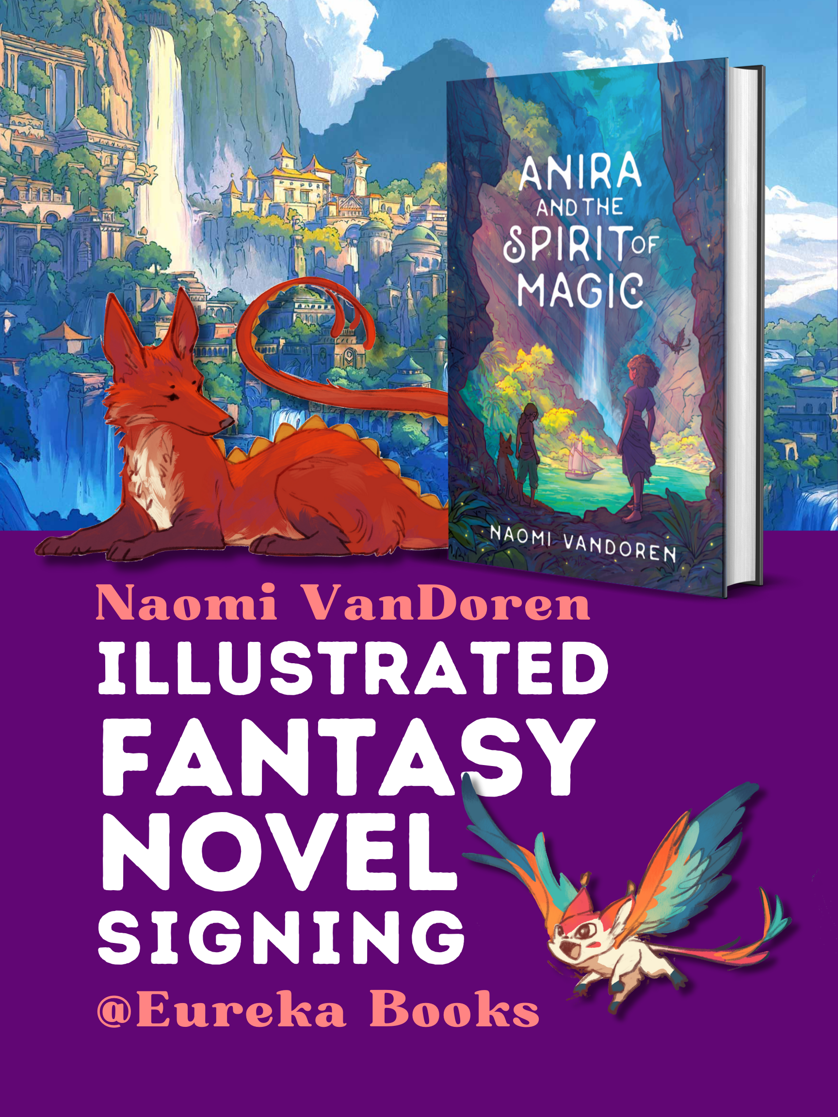 Join fantasy author and illustrator Naomi VanDoren at Eureka Books for a special book signing event featuring her illustrated novels “Anira and the Spirit of Magic” and “Naiya and the Foxdragon”.