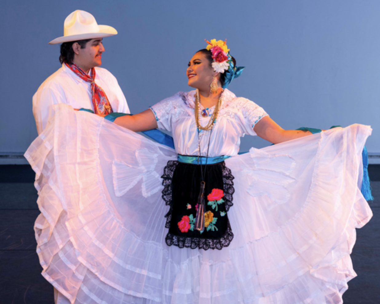 Adalynn, an 18 year old Marine Biology major spoke, “Participating in Fiesta Folklorica has given me the opportunity to connect with my Mexican heritage and to learn more about the rich culture of Mexico…getting to work alongside my maestros and fellow dancers—It has been a wonderful experience getting to practice with everyone and meet new people”