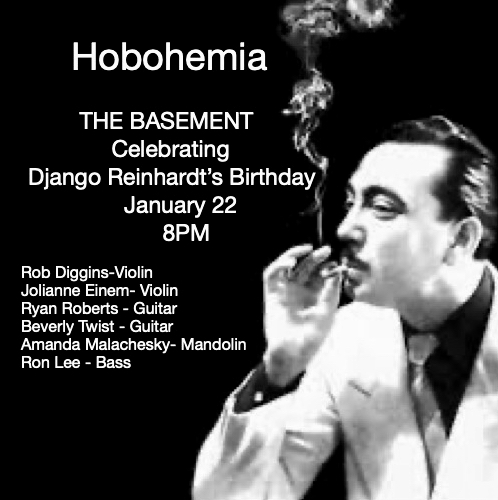 It’s that time of year again! Time to celebrate Django’s Reinhardt’s birthday 🎂 Join Hobohemia for a special evening at The Basement Thursday, January 22, 8-11 pm. We’ve got lots of swing tunes polished up for your dancing and listening pleasure.
