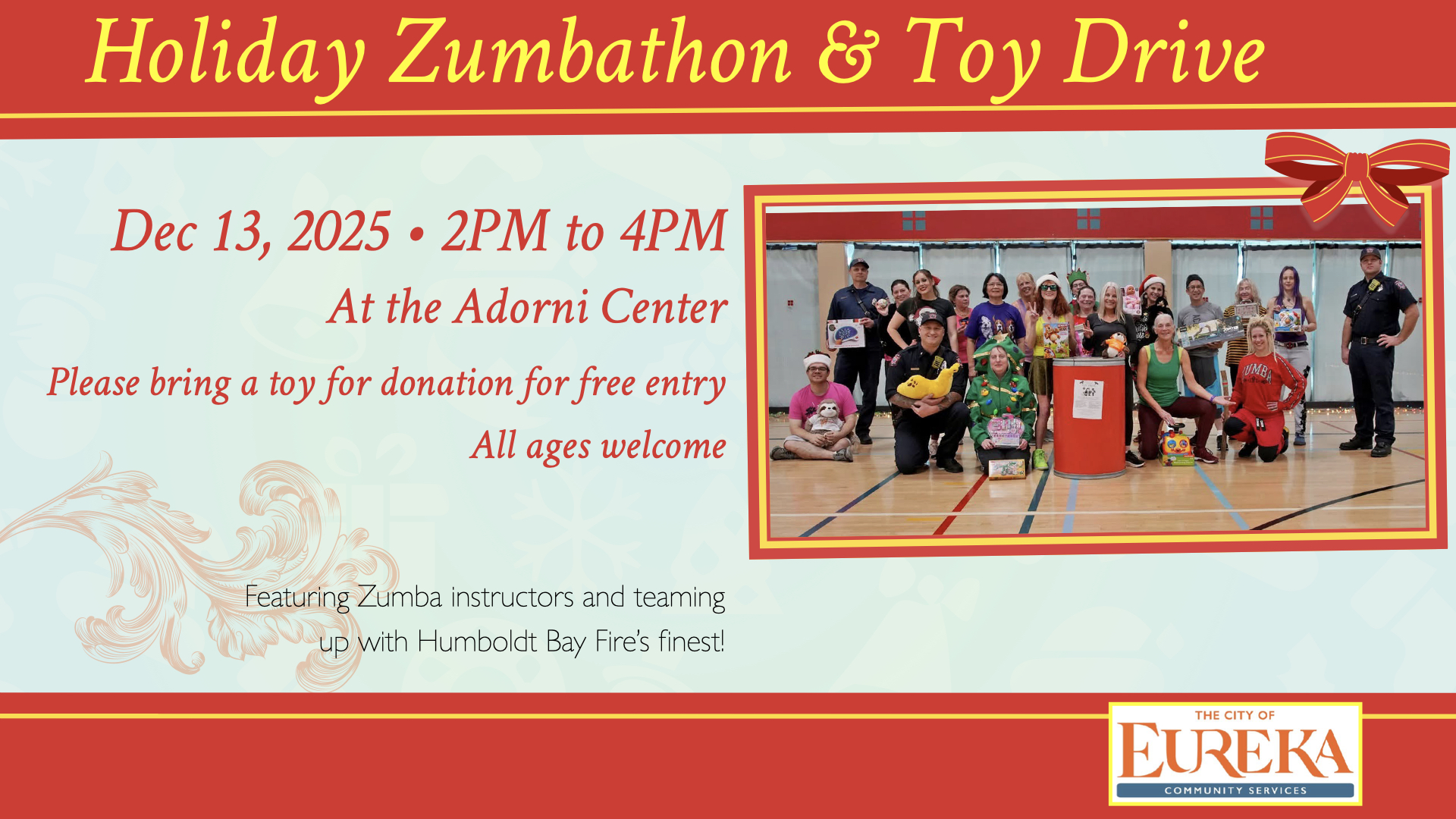 Come join our 4th annual Zumbathon and Toy Drive to ring in the Holidays! Featuring Zumba instructors and teaming up with Humboldt Bay Fire’s finest.