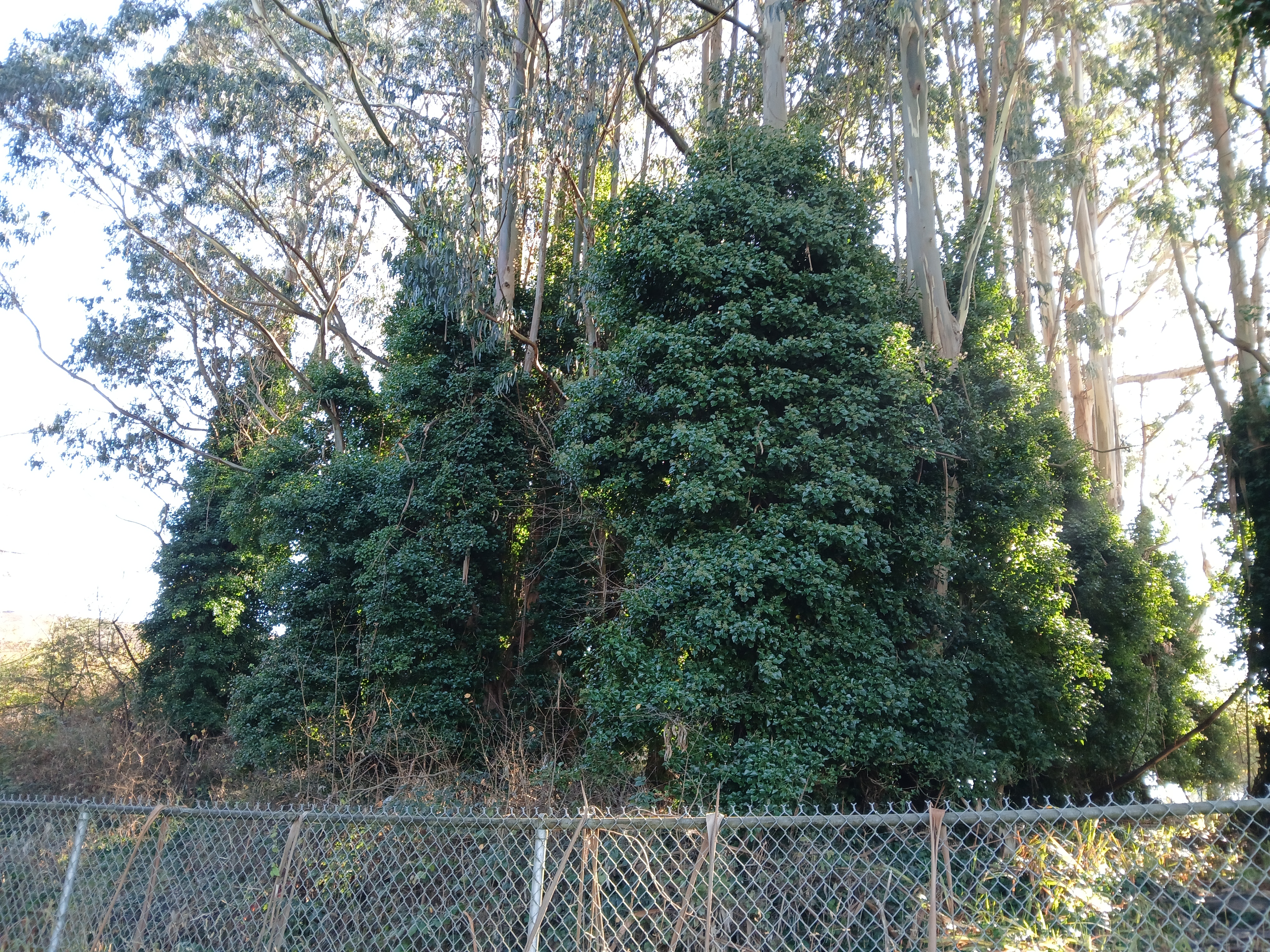 Please join us to help take out some really bad fruiting invasive ivy infestations at the HCOE. This event is sponsored by EPIC (Environmental Protection Information Center) and RIPE (Redwood Invasive Plant Eradicators). This is part of our efforts to supplement the restoration work being done at Cooper Gulch Park. Girdling massive infestations of fruiting invasive ivy on trees with pruning saws. The creek that runs through Cooper Gulch Park runs through this area also, and this area is immediately next to Cooper Gulch Park. The level of infestations here are unusually bad. Over 50 trees have severe ivy infestations, each producing thousands of berries which are being eaten by birds and spread throughout the area, including Cooper Gulch Park next door. We will have tools and safety equipment for everyone, but it helps us a lot if you bring your own. Bring thick long-sleeved clothing and water, and bring gloves if you have them.