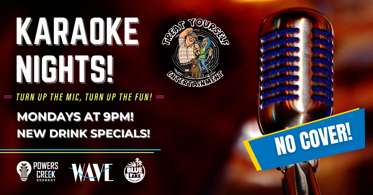 Treat Yourself Entertainment has become a staple of the local karaoke scene, and they are keeping their weekly party in the Wave in 2026! Dustin and Cassandra will be here every Monday to host a fun 3-hour karaoke session for you all! More songs to choose from, more fun to be had, and a great way to start your week off right. Come out with some friends, try some of the new drink specials concocted by our fantastic bartenders, and sing the night away. This event is 21+