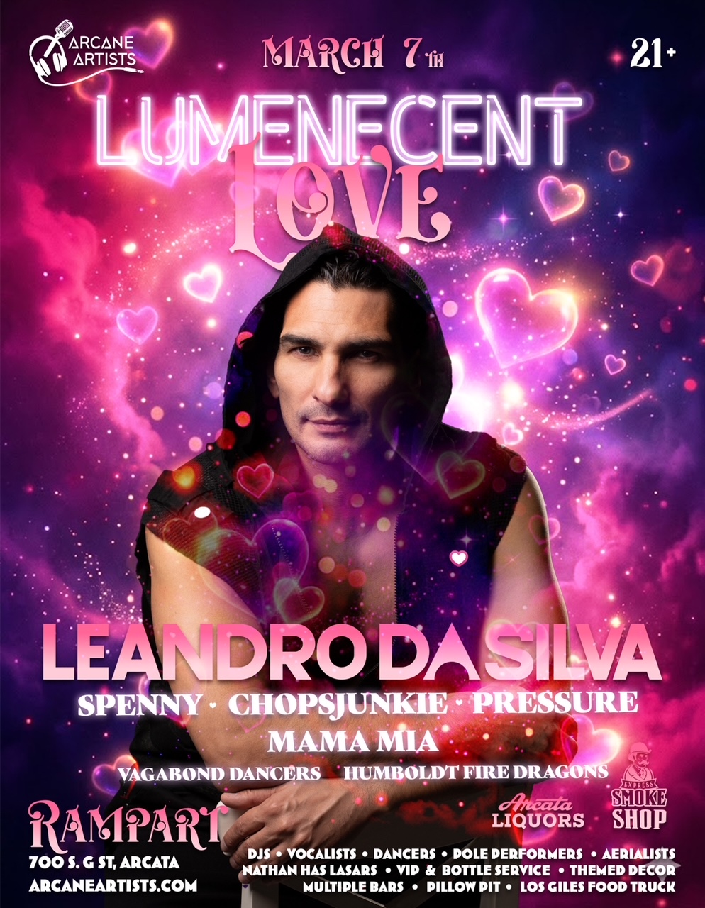 Don’t miss the rowdiest show this spring, featuring 32 performers, 2 stages, producers, djs, dancers, aerialists, pole dancers, fire performers, VIP (with express Smokeshop featured goodie bag), bottle service tables, food, & so much more!
