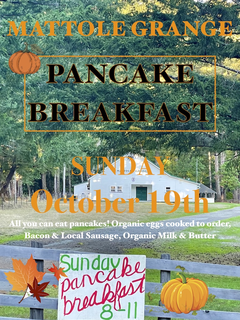 On Sunday, October 19th, the Mattole Grange is hosting a Father’s Day down-home Pancake Breakfast, 8 to 11AM at the historic Mattole Grange Hall. All the pancakes you can eat, made from scratch using Mattole grown organic Hindley wheat or Gluten-Free or Krusteaz option, eggs cooked any way you like. Choice of bacon or sausage, coffee, milk, and organic orange juice. The Mattole Grange Hall is located next to A. Way Park on the Mattole Road between Honeydew and Petrolia.