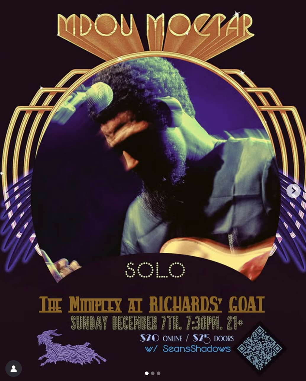 SUNDAY 12/7 early 7:30 solo show‼️ 🌍 Nigerien guitarist, singer and songwriter Mahamadou Souleymane (aka ⭐️MDOU MOCTAR)‘s music has been featured in the 🗞️New Yorker, 🗞️New York Times, 🗞️NPR, 🗞️Rolling Stone, 🗞️BBC, 🗞️The Guardian, 🗞️Pitchfork, and more, and his film continues to be screened at festivals around the world.📽️🎞️
