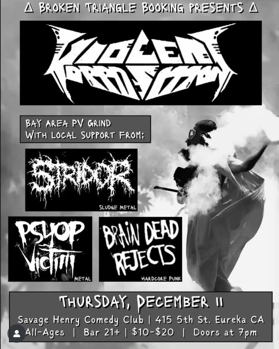 Sets from bay area grind band Violent Opposition, Psyop Victim, Brain Dead Rejects and Stridor.